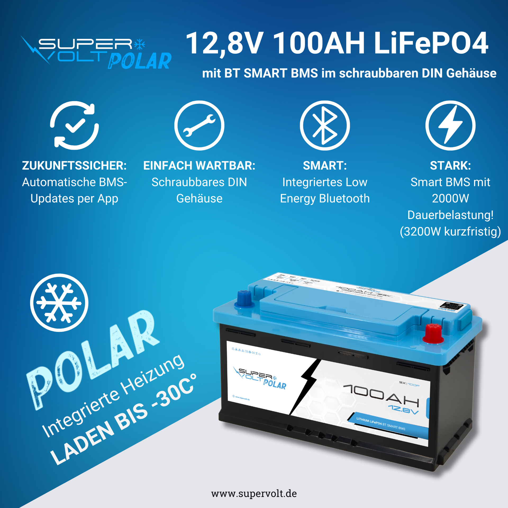 Diese LiFePO₄ 12V 100Ah Polar Batterie ist mit einem intelligenten BMS ausgestattet, das zuverlässig vor