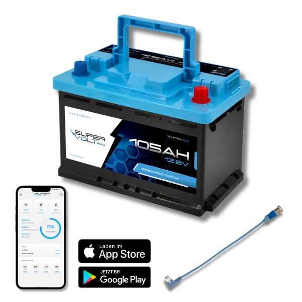 Diese LiFePO₄ 12V 105Ah Pro Batterie ist mit einem intelligenten BMS ausgestattet, das zuverlässig vor