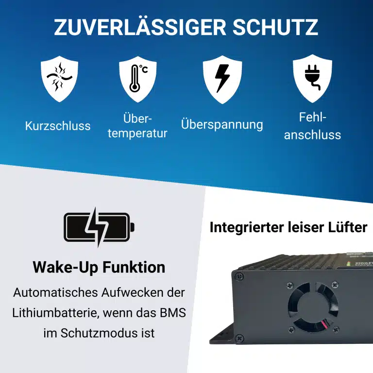 🛡️ Mehrere Schutzfunktionen wie Überhitzungsschutz, Überspannungsschutz, Kurzschlussschutz und Schutz vor Fehlanschlüssen.