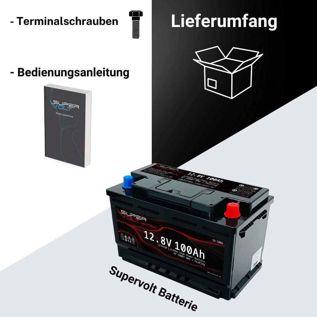 Unsere 100ah Supervolt Ultra Hochleistungsbatterie ist ein Kraftpaket voller innovativer Technologien. Mit einem Gewicht von nur 10,5kg stellt diese 12,8V 100Ah High Power LiFePO4 Batterie eine signifikante Gewichtsersparnis gegenüber herkömmlichen Bleibatterien dar. Optimiert für Performance und Langlebigkeit.
